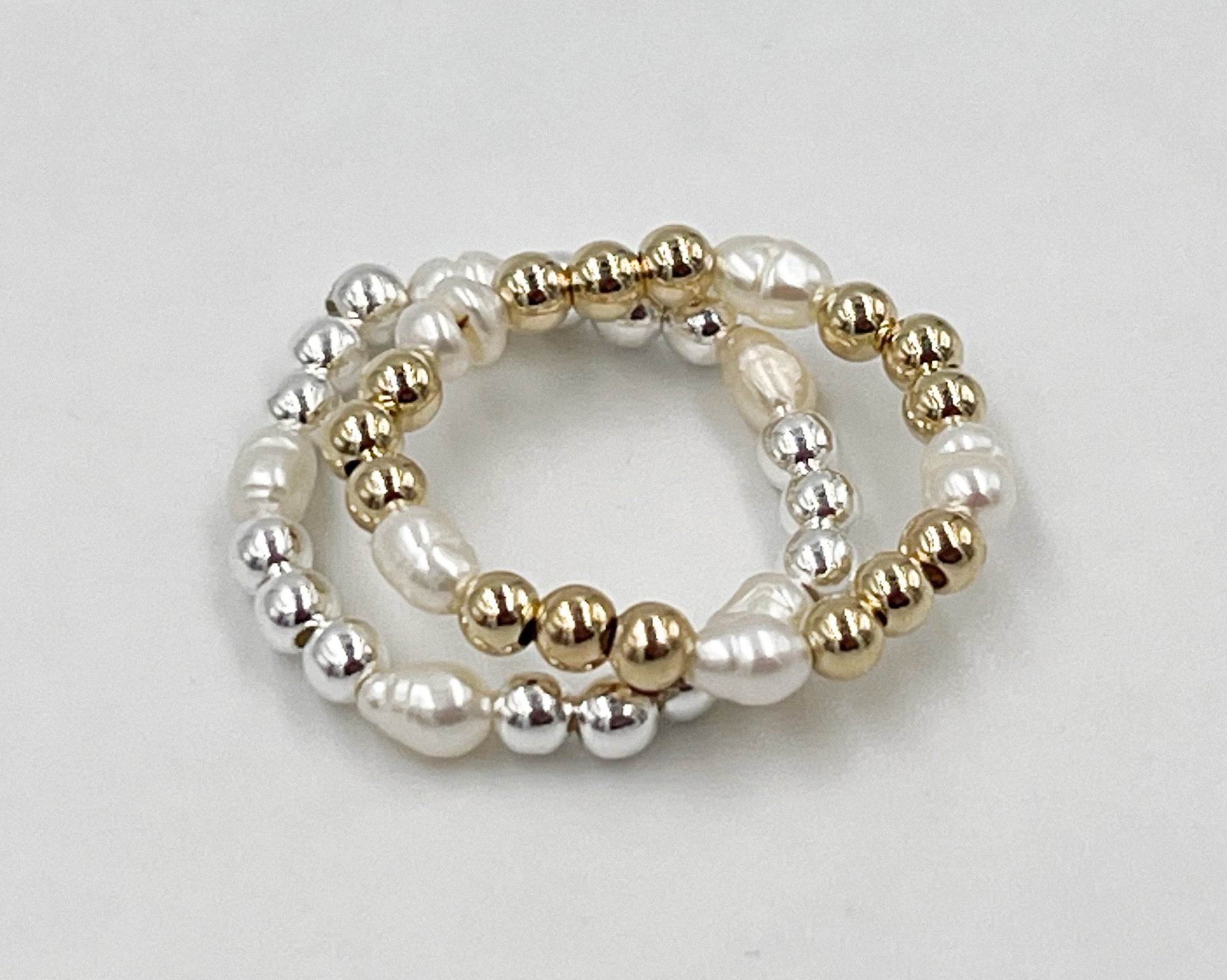 Sterling silver or gold 3mm beads with freshwater pearls.