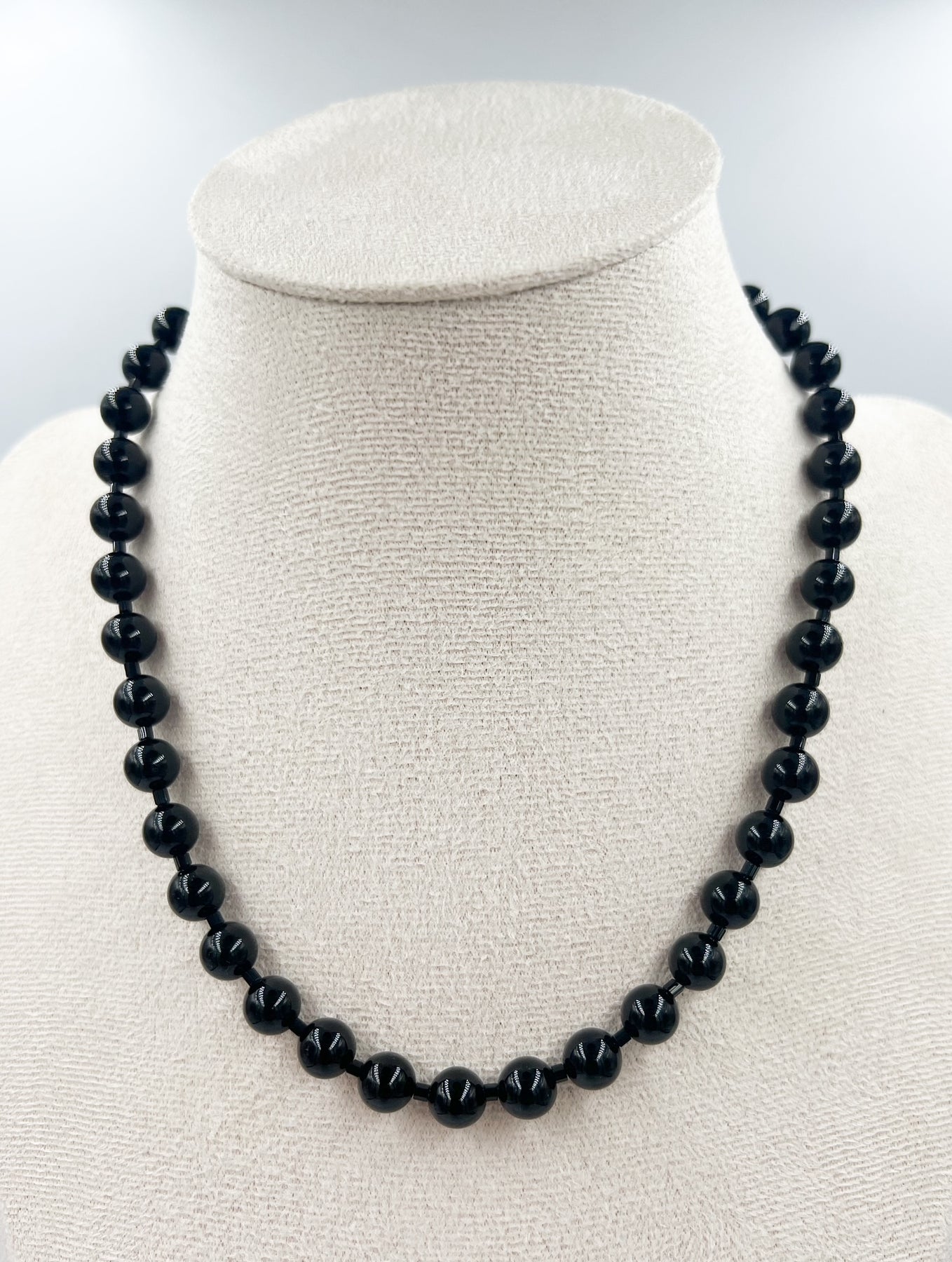Inspired by gorgeous cocktail bars in NYC, this necklace is perfect for dressing up or down and nights out. 8mm black tourmaline with black glass crystals and either silver or gold findings. 16" length, message for other sizes.